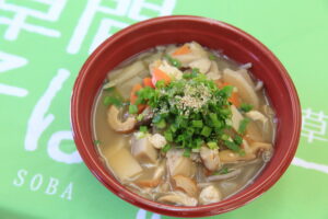 草間産の新そば粉で手打ちした「けんちんそば」「かけそば」の提供