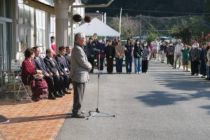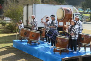 オープニングのゆずりは太鼓の演奏 と堀江会長の開会のあいさつ