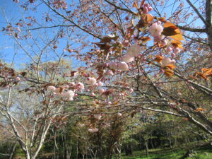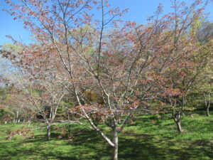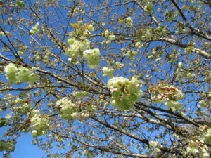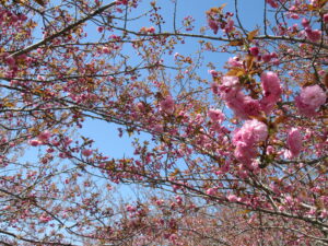 朝からの好天により開花が進んでいます。昨日開花し始めた八重桜のカンザンですが、早くも3分咲き程度になっています。