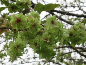 メインの「カンザン」ですが、昨日の雨で早く咲いた花びらは少し散り始めていますが、まだ満開です。